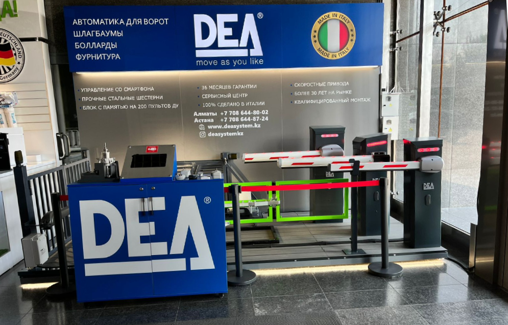 Хотите убедиться в надёжности и удобстве автоматики для ворот DEA SYSTEM до покупки? Наша цель — не просто «продать», а помочь каждому клиенту найти качественный и долговечный продукт, который будет служить годами. Электроприводы DEA SYSTEM — это мощные, выносливые и безотказные механизмы, созданные для того, чтобы ворота работали плавно, бесшумно и уверенно каждый день. Они отличаются впечатляющей надёжностью, высокой скоростью и исключительной долговечностью, сохраняя безупречную работу даже при интенсивных нагрузках. Вся автоматика DEA — это сочетание силы и элегантности, технологичности и практичности, они дарят владельцу комфорт, уверенность и спокойствие. Каждая модель — это эталон качества, символ надёжности и гарантированная мощь, которая подчёркивает статус и заботу о вашем комфорте. Приходите, чтобы лично убедиться в правильном выборе! Шоурум Адрес: г. Алматы ул. Кабдолова 1/8 ТЦ Армада , 2 павильон В данном шоуруме, вы можете самостоятельно ознакомиться с представленной экспозицией, получить всю информацию через специальный информационный планшет, и в случае возникновения вопросов, вы можете связаться с нами любым удобным для вас способом Офисы с демонстрационной экспозицией, на которой представлены наши ТОПовые электроприводы и шлагбаумы, которые уже установлены и подключены! А наши высококвалифицированные специалисты проведут грамотную консультацию и помогут вам определиться с выбором автоматики и аксессуаров. Адрес: г. Алматы , ул. Руставели 3 ,оф 2 г. Астана, ул. Кенесары, 43, н.п. 4 Мы работаем по всему Казахстану! Свяжитесь с нами любым удобным для вас способом, все контакты можно найти ЗДЕСЬ.